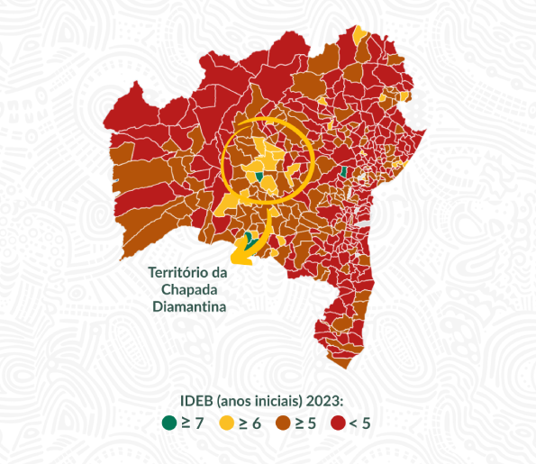 Os 12 municípios que estiveram presentes no lançamento do Projeto Chapada, no final da década de 1990, tiveram uma evolução importante nos resultados do IDEB, destacando a Chapada Diamantina no mapa da Bahia como uma das regiões que mais avançaram em seus indicadores na Educação Básica.